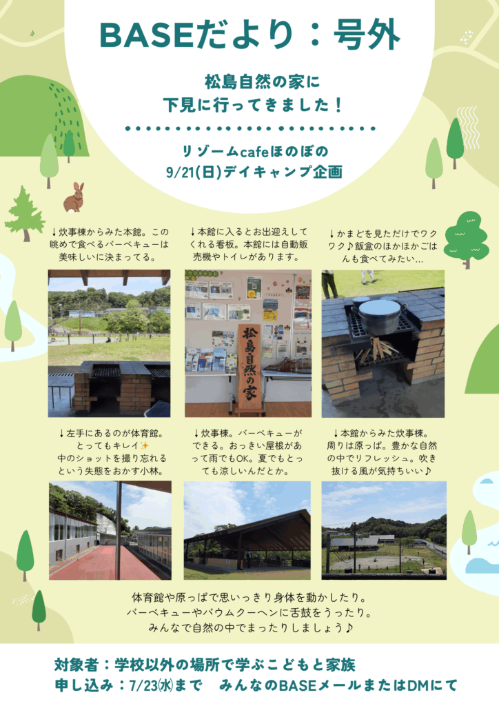 9月21日(日)に、松島自然の家でデイキャンプを行います♪